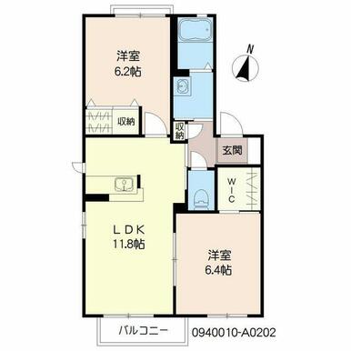 2LDK(LDK11.8帖 洋室6.4帖 洋室6.2帖) |